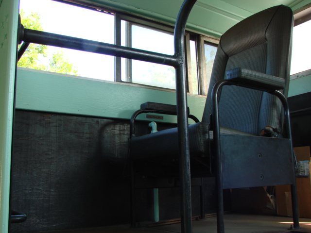 The working part of the caboose is the raised central section with all the windows around it, which is called the cupola (KOO-pa-la – it is an architectural term meaning “little cup” or “little dome.”) Anytime the train is moving, at least one of the crewmen had to be sitting in the seats in the cupola watching from the rear of the train for anything that might be a hazard to the safe operation of the train. They would be looking for such things as overheated wheel bearings, shif-ting cargo on the flatcars or log cars, or unauthorized personnel boarding the train such as hobos. From time to time, they would look at the gage above the passageway near the “B” end of the ca-boose. That gage measures the air pressure in the braking system throughout the entire length of the train. When the train is moving, the gage’s needle should be pointing between 80 to 90 pounds per square inch of air pressure in order to keep the brake shoes away from the wheels, so they are not wearing out prematurely. If the crewmen find a problem, they can get on the radio-telephone above the passageway near the “A” end of the caboose, and talk to the locomotive engineer at the other end of the train, or to the train dispatcher a couple hundred miles away, and explain what the problem is. However in an emergency, anyone sitting in either of the seats in the cupola can stop the entire freight train if necessary. Underneath the armrest next to the out-side wall is an air valve with a red handle. All that needs to be done is turn that handle just a quarter of a turn, which then opens the air valve, then a hissing sound is heard outside as the air escapes under pressure, the needle on the air pressure gage drops to zero, and every brake on every car in the train will be engaged against its wheel. Hopefully, that action will bring the freight to a safe stop, but it may take up to a mile to bring the train to a complete halt, depending on the speed of the train and the steepness of the track. Trains do not stop on a dime – they’ll roll right over that coin, and it is very flat when all is finished!